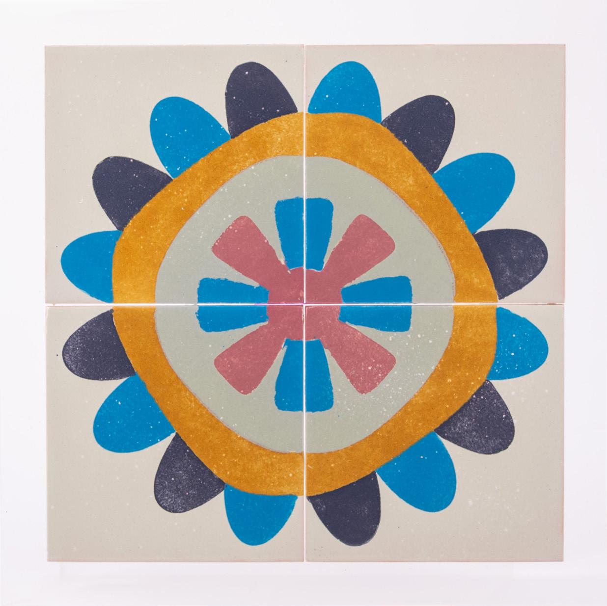Dim. aprox. (azulejos): 28 x 28 cm; Dim. aprox. (acrílico): 33 x 33 cm
