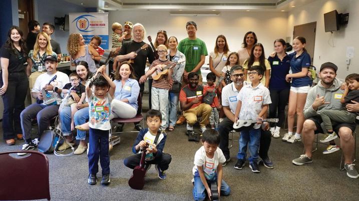 On June 28, 2025, partners for pediatric vision (ppv) and vistas for children hosted “notes Bring Hope,” a day of free ukulele lessons for children with vision loss at the Torrance airport community room. Mark Fitchett, of Fitchett Guitar School, offered ukulele instruction to children who receive vision education and support services from partners for pediatric vision. children were paired with a sighted peer volunteer from Junior vistas, vistas for children, and las amigas. every participant took home their own ukulele to continue their musical journey, thanks to the generous donations of ukuleles from Guitar center Music Foundation and from Shari Sunada and her husband craig. a short walk away, the Western Museum of Flight welcomed the children and their families for an up-close experience with aircraft and space exploration. volunteers led the children with visual impairment through experiences that included sitting in the cockpit of a fighter jet and exploring engines, missiles and model aircraft. children who receive services from partners for pediatric vision learn experientially because of their vision loss. Hands-on opportunities, like ukulele lessons, and museum tours, offer opportunities for the visually impaired to meet one another. To learn more visit www.partnersforpediatricvision.org