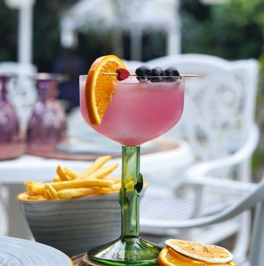 Step into a glasshouse retreat where nature and elegance converge. Surrounded by lush greenery and vibrant orals, this new bar and eatery is a sanctuary of style. At its core, a stunning island bar dazzles with chandeliers, brass accents, and mirrored alcoves—an ideal setting to sip and savour. e culinary o erings, imagined by Michelin-starred Chef Suvir Saran and Chef Vardaan Marwah, include a selection of tapasstyle delights such as keema salli pao, veggie crisps with dips, and playful kul pops. Enter through a towering wooden door into a sun-soaked conservatory, where Victorian-style sofas in bold leopard print, so taupe drapes, and golden fans create a blend of opulence and warmth. Named in homage to a Viceroy of India, this space is a time capsule of old-world charm, reimagined with a modern culinary twist.