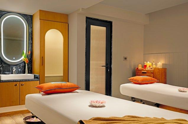 LEISURE The Ra les Spa provides a luxurious, intimate retreat with personalised treatments for beauty and wellness. It features nine treatment suites, five of which include private pools, relaxation areas, sauna, hammam, steam room, and jacuzzi. The hotel also boasts two swimming pools and a state-of-the-art gym.