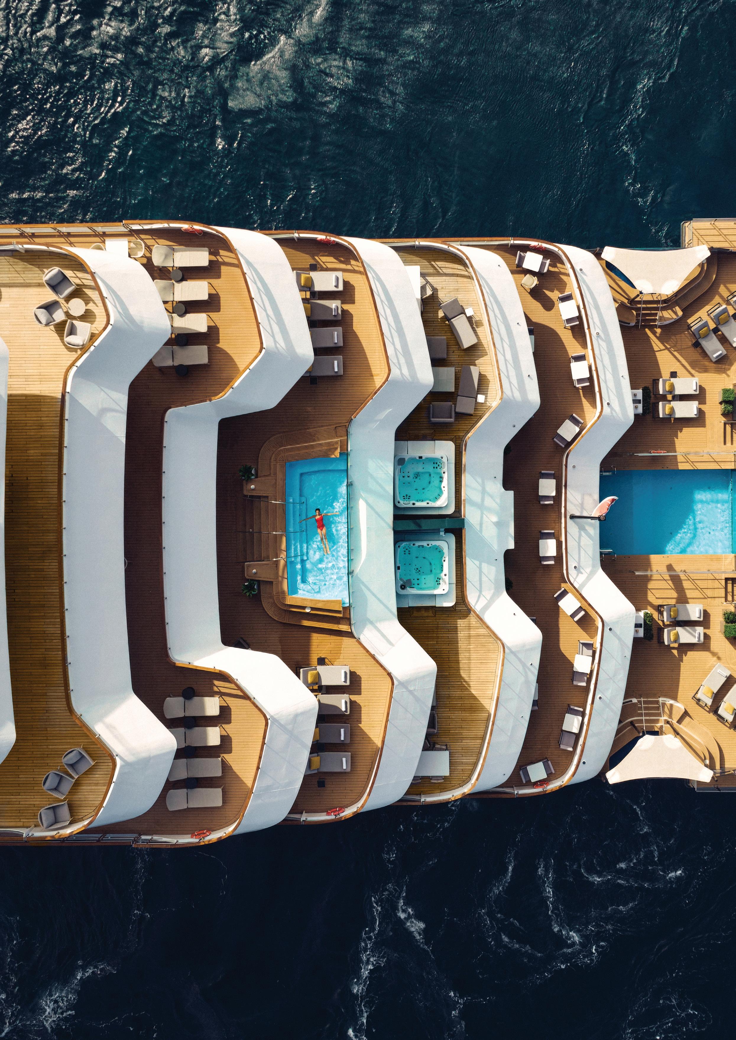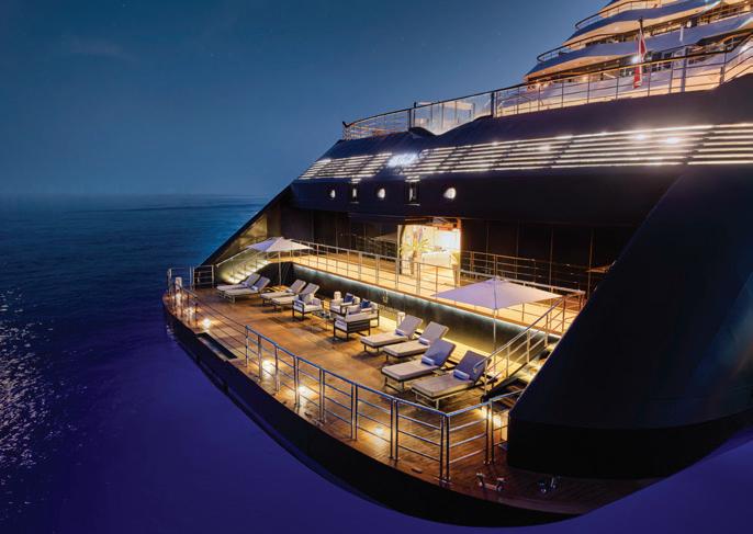 the incredible engineering of the world’s most stylish yachts. As guests of the Ritz-Carlton hotels have come to expect, each yacht features personalised service and luxurious amenities, as well as world-class speciality restaurants and spacious suites—each with its own private terrace. These accommodation options redefine luxury, offering a range from Terrace Suites to the Owner’s Suite—each boasts an all-suite, allbalcony allure. Public areas fit the brief perfectly, whether you wish to rejuvenate by the pool under the sun, mix and mingle in the Living Room or take in every gorgeous detail from the Observation Lounge.