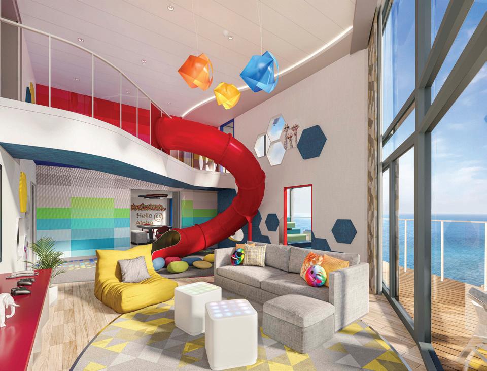 Kaia stands out as the most spectacular yacht in the fleet, offering new amenities designed to enhance fun and relaxation in luxury ocean cruising and island-hopping. The Observation Sun Deck at the bow features luxurious sunbeds, sun loungers and a Spa Pool. The reimagined Sky Deck boasts cabanas and an indoor/outdoor lounge, providing guests with more options for soaking up the views. The expanded gym allows for an outdoor workout followed by a refreshing dip in the sea, creating an unforgettable experience. There’s even a four-deck slide that leads straight into the sea from the marina deck!