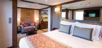 Luxurious suites and cabins with beautifully appointed en-suite bathrooms and river views.