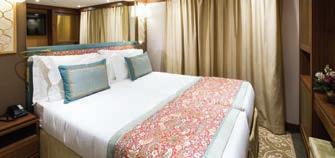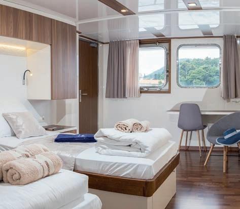 17sq.m/183sq.ft with twin beds that can be pushed together and one fi xed single bed (can be used as twin or triple). Cabin has two porthole windows (non-opening)