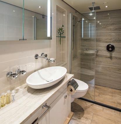 • Cabins include air-conditioning, safe, wardrobe, small desk, TV, hairdryer and en suite bathroom with shower and toiletries.