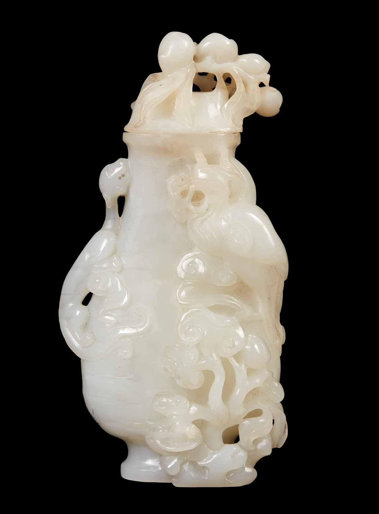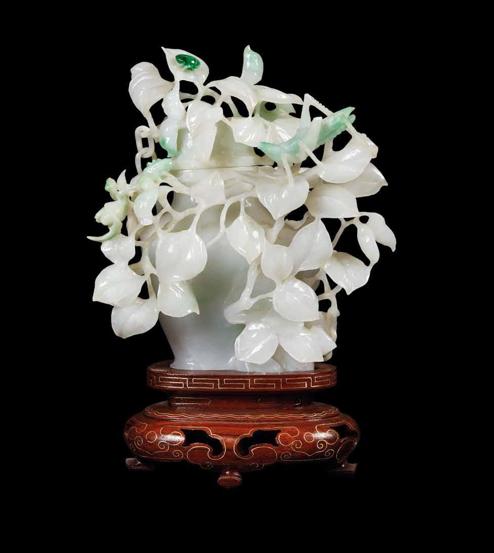 清 十八世纪 青白玉花鸟摆件 高17,5厘米