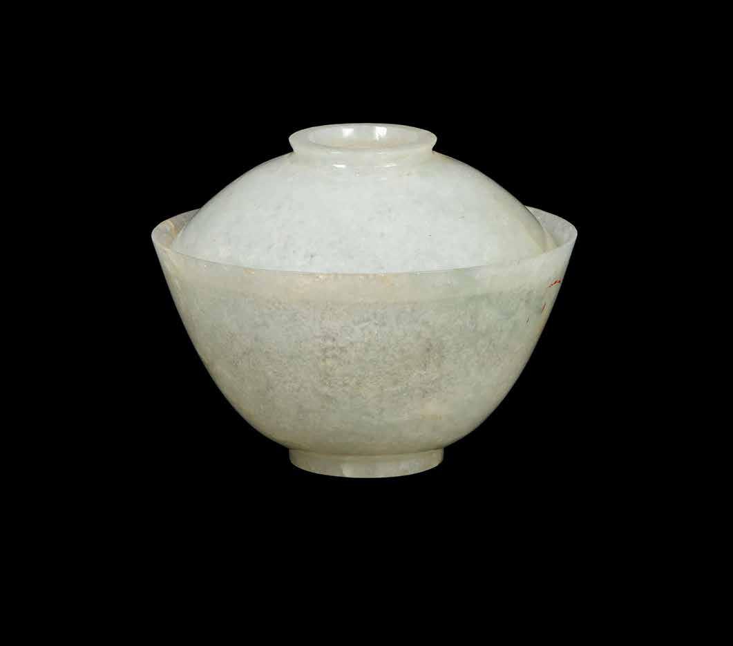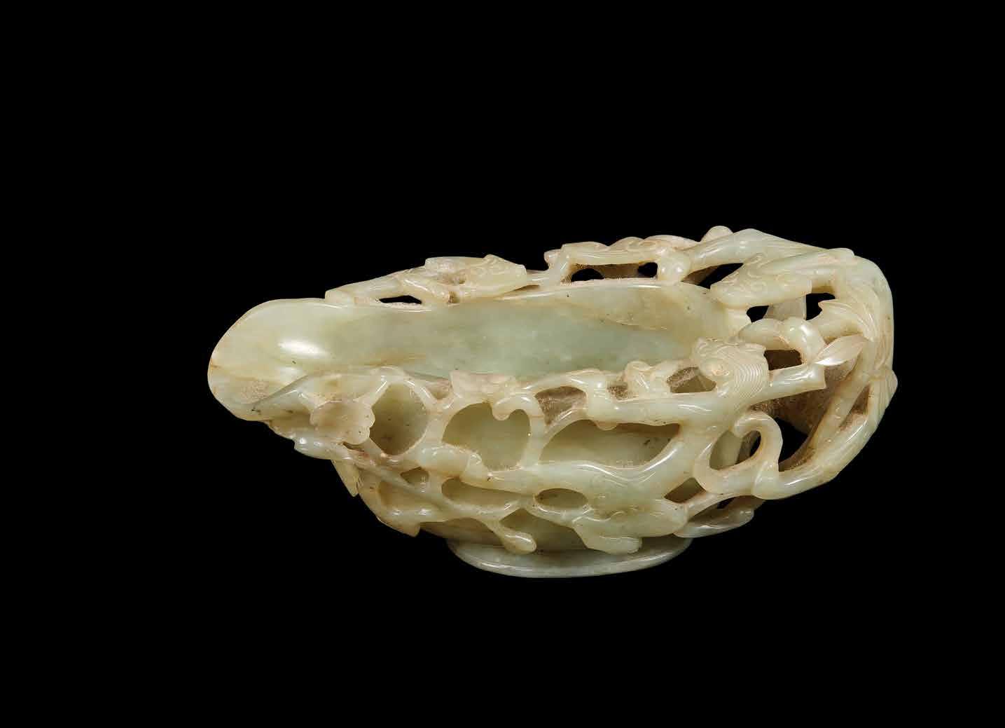 INTAGLIO, CINA, DINASTIA YUAN, SEC. XIII-XVI porzione superiore di cappello in giada raffigurante un airone immerso tra rami e fiori di loto.