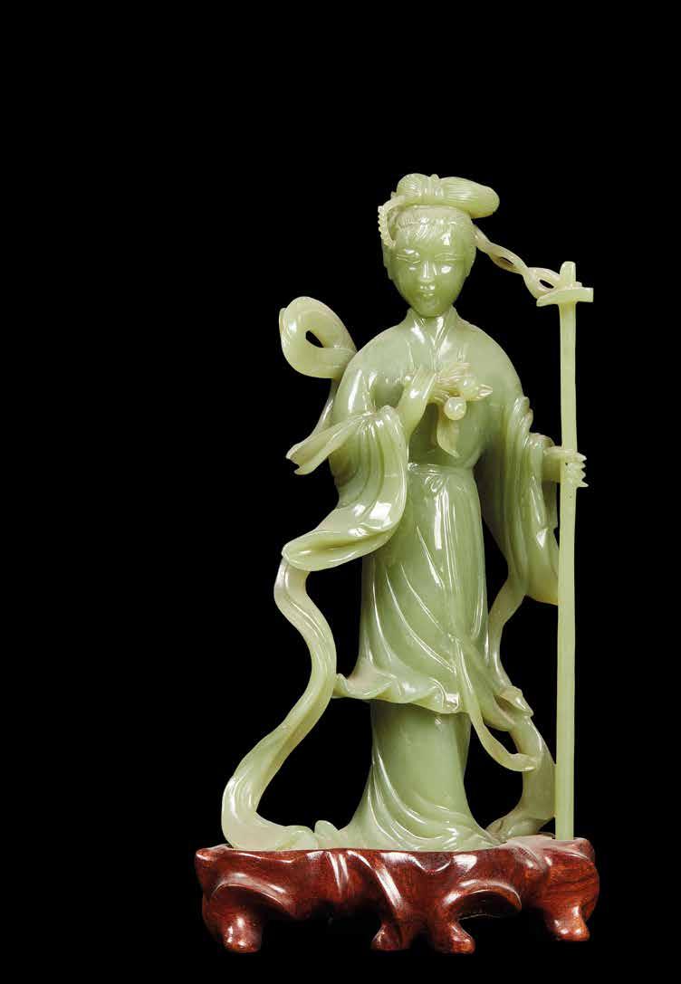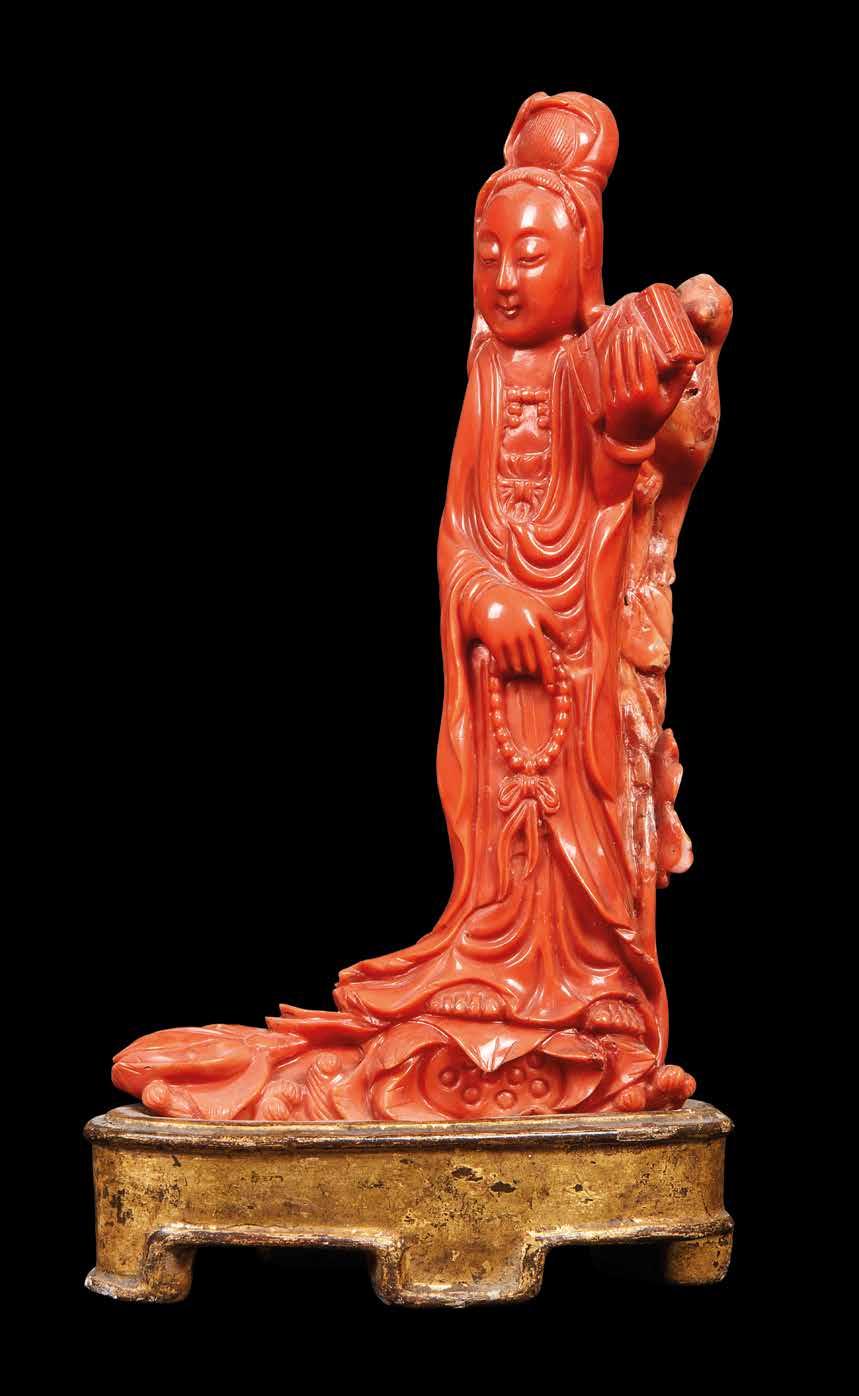 清 十九至二十世纪 珊瑚雕仕女像 高20厘米 包含木制底座重 384,6 克