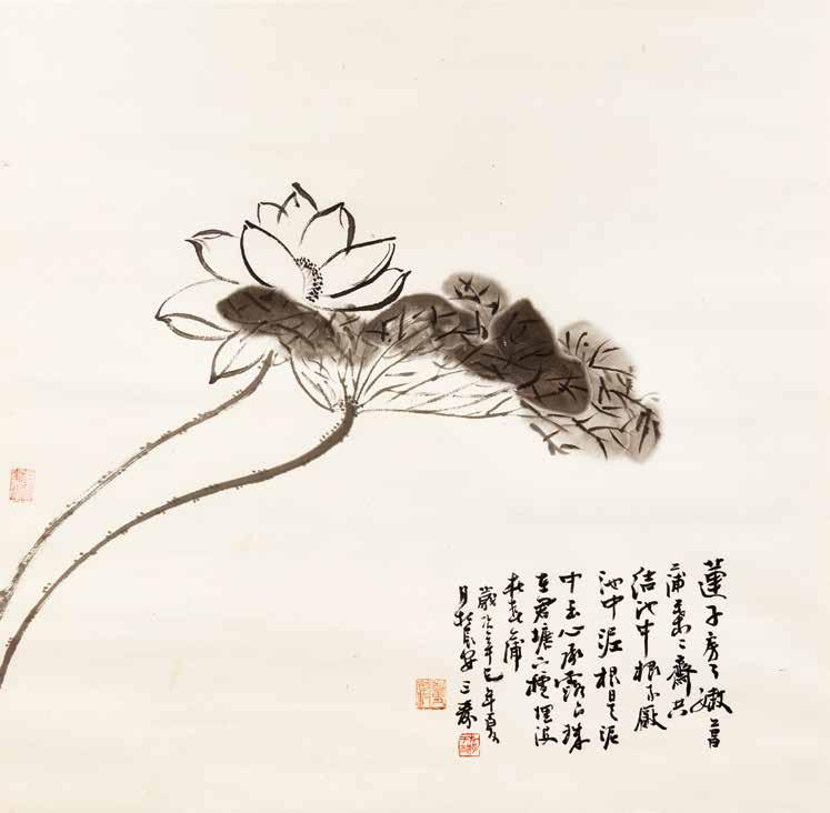Su seta raffigurante fiori Mudan, reca la firma Shenbaochu (19011977).