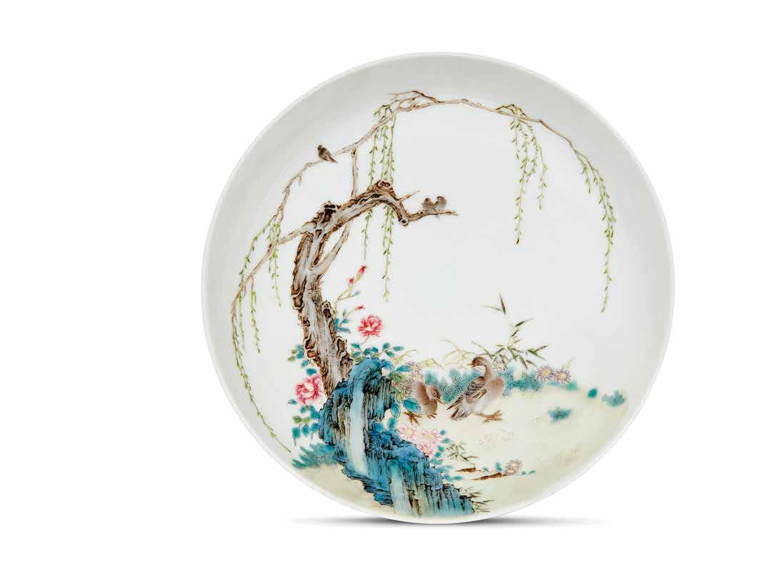 Firmato 张倩华 (Zhang Qianhua) (1930~2012,su seta, rappresenta una scena di vita quotidiana in un giardino cinese, con tre donne e un bambino sotto un salice, immersi in un paesaggio sereno. Zhang, discepolo di Shen Zicheng, combina tecniche tradizionali con uno stile delicato, evocando eleganza e armonia.