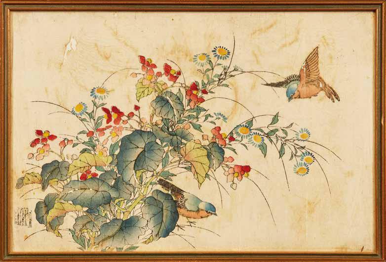 日本十九世纪 花鸟图 纸本设色 尺幅30 x 46厘米