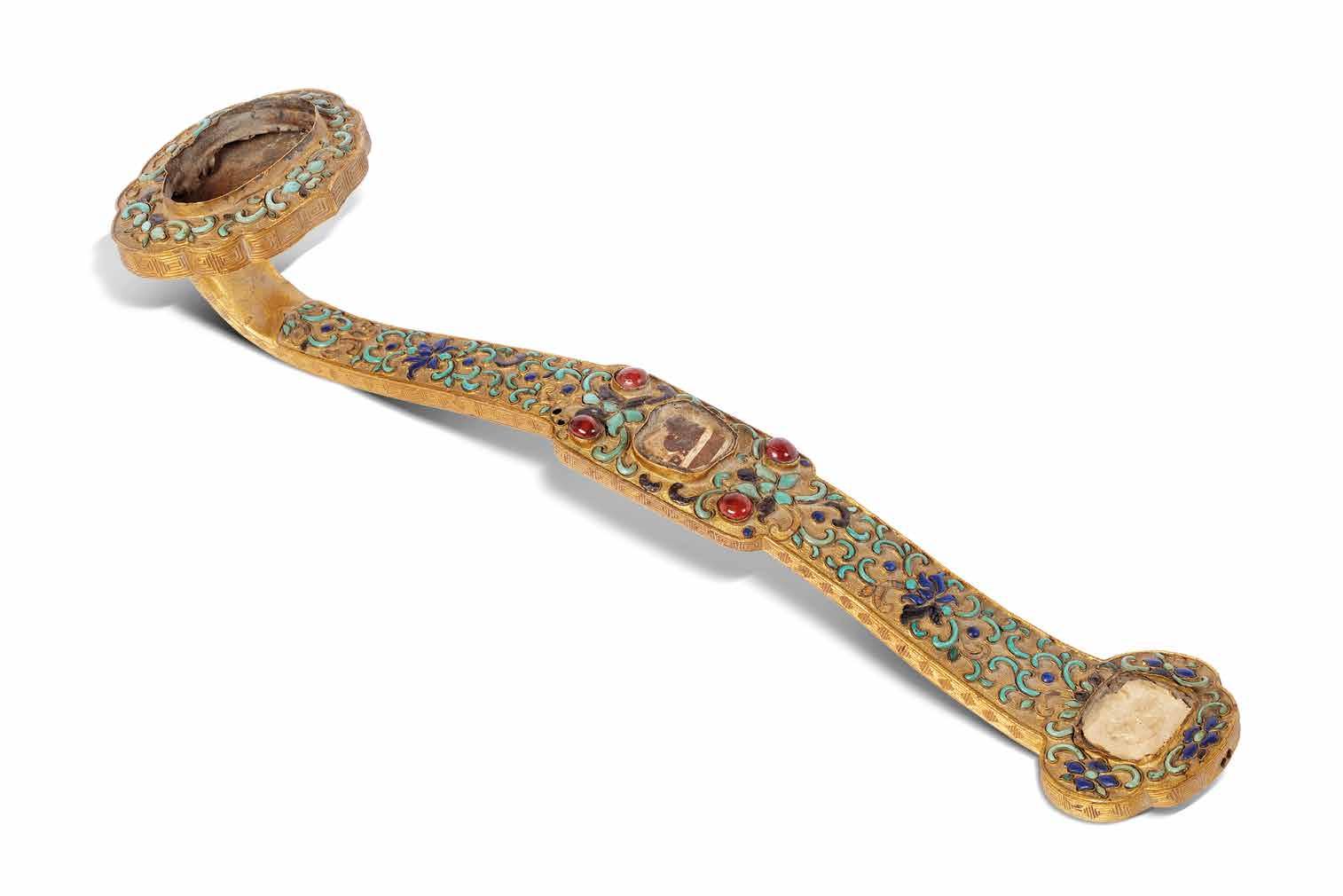 藏 十九世纪 银嵌宝佛法乐器 高53厘米