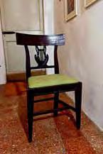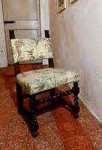 Gruppo di 3 sedie di cui una in stile sec. XVII con gambe tornite, schienale e sedile rivestito in stoffa con fogliame, fine sec. XIX, una con schienale centrato da cartella a lira con cigni, inizio sec. XIX ed una con schienale traforato con motivo a catena, fine sec. XVIII, danni