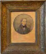 Tre miniature, primo quarto sec. XIX di cui una con ritratto di giovane gentildonna, matita e acquerello su carta, iscrizione a penna sul retro e data 1832, entro cornice coeva in legno dorato, cm 30x26, una con ritratto di gentiluomo con favoriti e baffi acquerello su carta, entro tondo, cornice coeva in legno e stucco dorati, cm 19x16 ed una con ritratto di gentiluomo con favoriti, matita su carta, entro cornice coeva in legno e stucco dorati, cm 19x16, iscrizione su retro: "Agosto del 1839 Fecit / dall’amico Gaetano Rossi a Luigi Gio[..]ni”