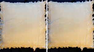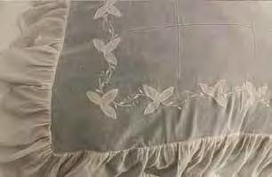 Coppia di grandi federe in mussola ricamati al centro con monogramma MH entro tralcio di foglie, bordati da volant e sul retro chiusura con bottoni, cuscini interni in piuma d’oca, cm. 70x70