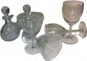 Astuccio foderato in seta azzurro contenente una piccola bottiglia e 6 bicchierini a calice in vetro e argento inciso con volute e corone, Ditta Masetti Fedi Firenze, inizio sec. XX, due bicchierini con gravi danni