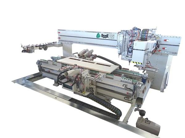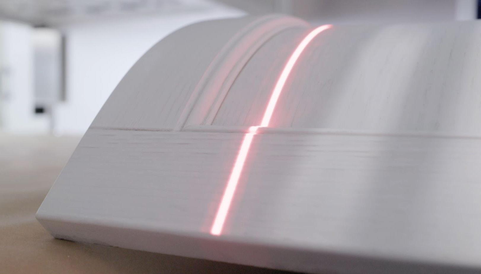 The machine is able to recognise characteristics and geometries thanks to the 3D scanner at the entrance of the infeed. The data, related to size, position, and shape of each panel of the workpiece, is sent to the electronic control of the machine. The advanced Superfici software