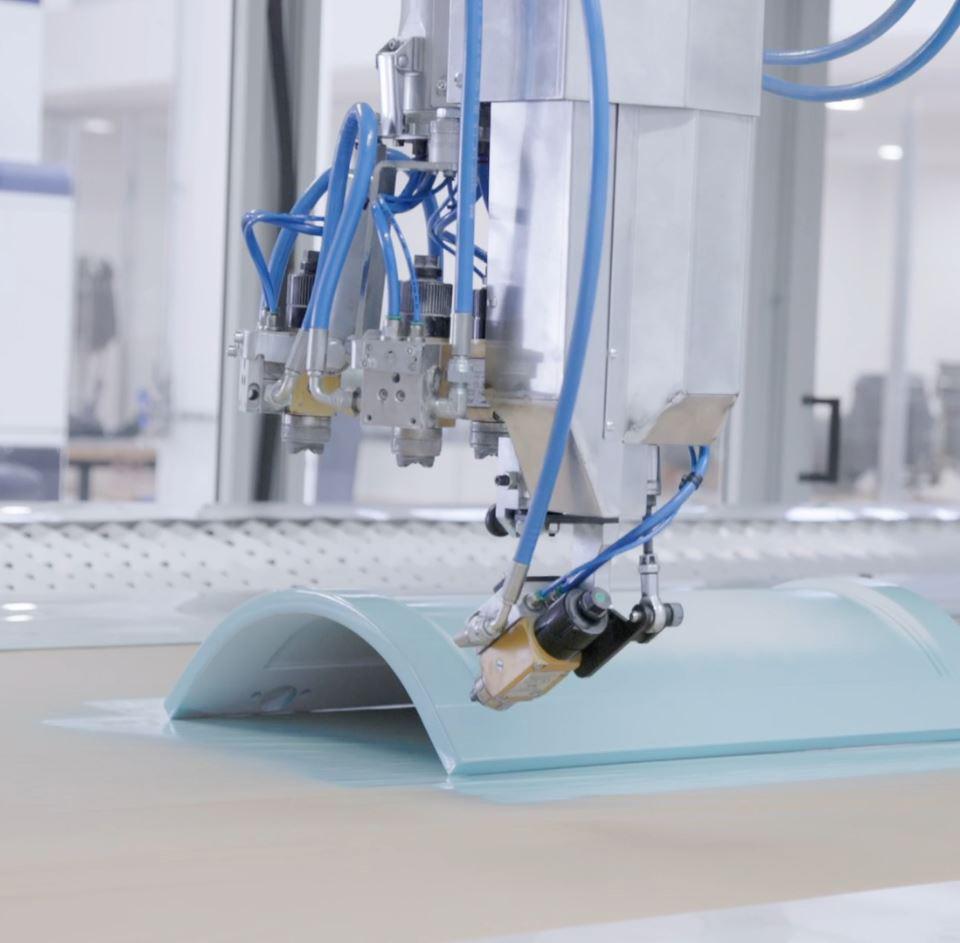 The Bravorobot is not only suitable for painting all kinds of materials (wood, glass, composite materials, .. ) but also for glue application: tuning the guns and the feeding system makes it possible to adapt it (the Bravorobot) to the glue’s specific characteristics.
