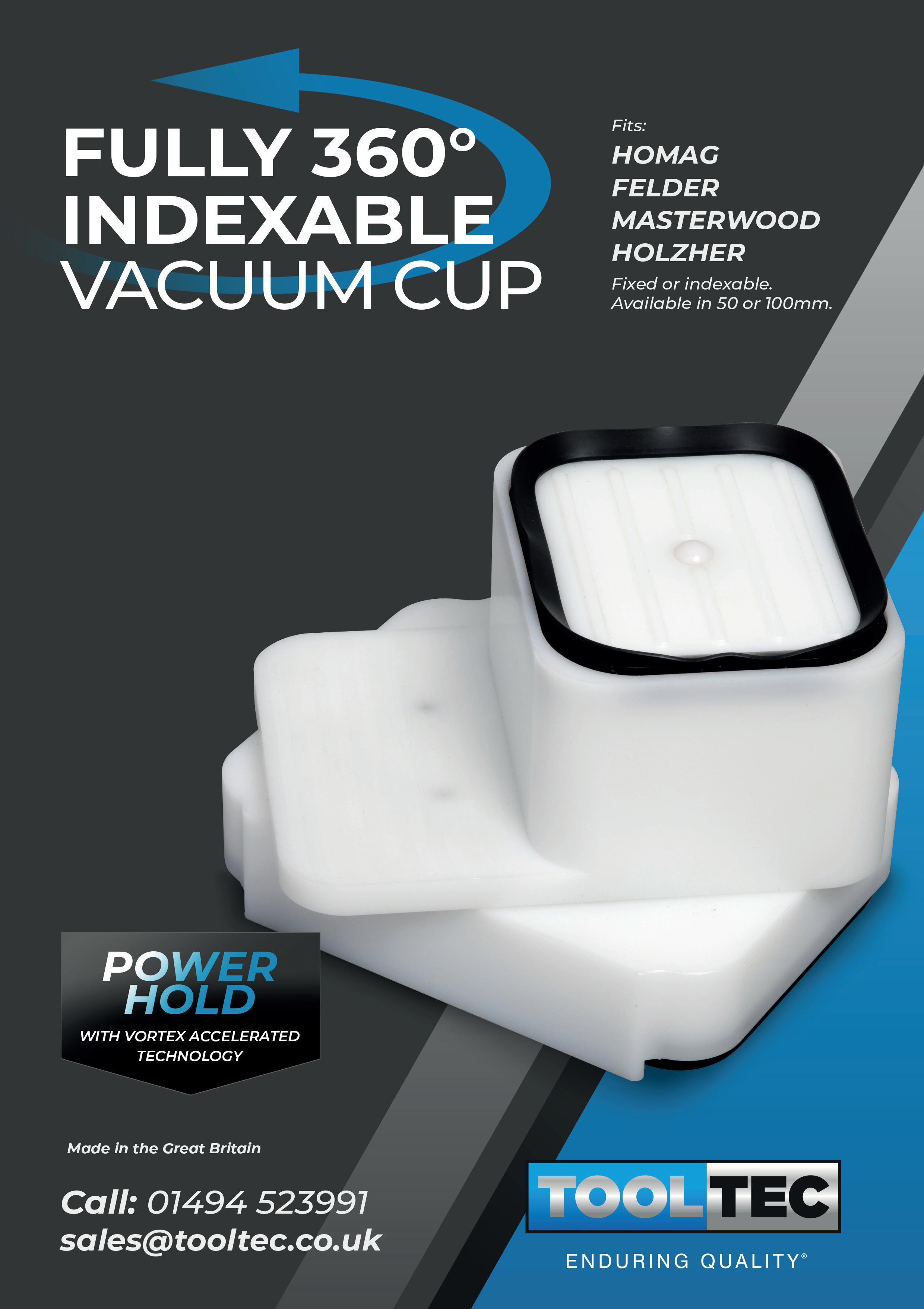 Tooltec vacuum cups feature the unrivalled powerful vortex acceleration technology. Available in full half and quarter.