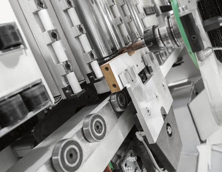 Drilling is done with extreme precision and the guarantee of always having the correct corresponding piece while the machine is operating, without the risk of slipping or bending. This happens thanks to a four-sensor 3D PROBE decimal probing system and a presser that ensure maximum workpiece stability during machining. This stability is guaranteed irrespective of the repositioning of the clamp and also in the most unusual and elaborate machining: the slide bearings act as a continuous guide, providing considerable help to the operator and reducing possible errors with piece linearity.