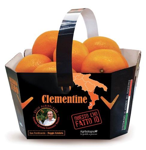 Marca 2023, anticipando così la prossima campagna di raccolta 2023/2024, le Clementine ‘Questo l’ho fatto io’, a residuo zero del socio Francesco Vecchio produttore di clementine a San Ferdinando (Reggio Calabria). La confezione sarà in vassoio di cartone da 1.5 kg, con manico per facilitare il trasporto.