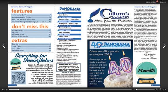Panorama Community Magazine 32 East Buttonwood Street Hazleton, PA 18201 570.459.1010 • www.panoramapa.com facebook.com/PanoramaMagazine