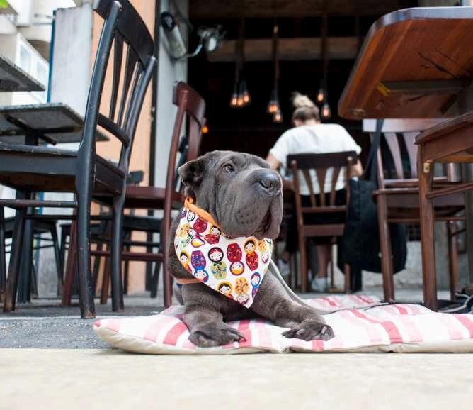 Em um restaurante posicione seu pet em um local que não fique na passagem de outras pessoas e cães.