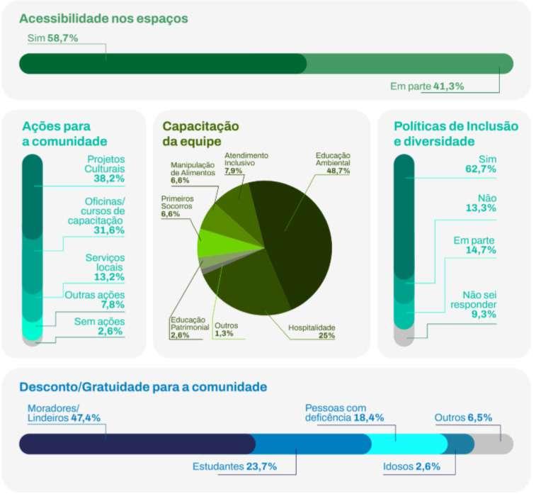 No tocante à valorização da diversidade, 62,7% dos empreendimentos afirmaram adotar políticas de inclusão, enquanto 13,3% não têm ações nesse sentido. Já a parceria com negócios locais foi confirmada por 57,3% dos em-
