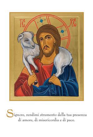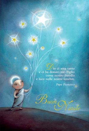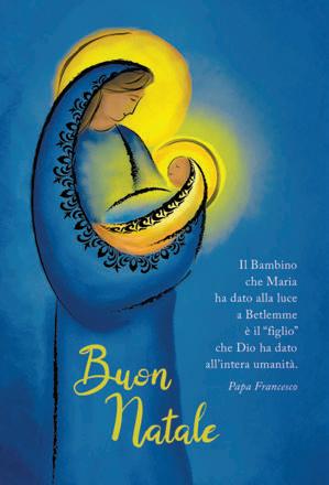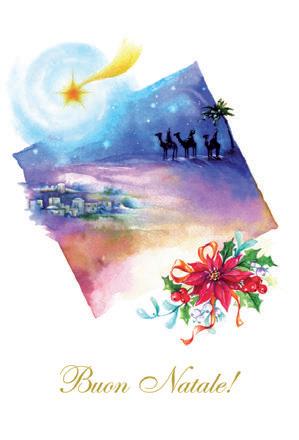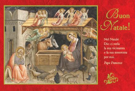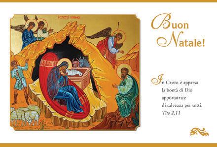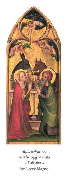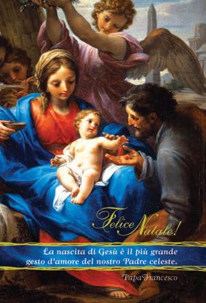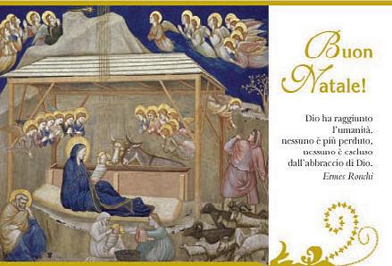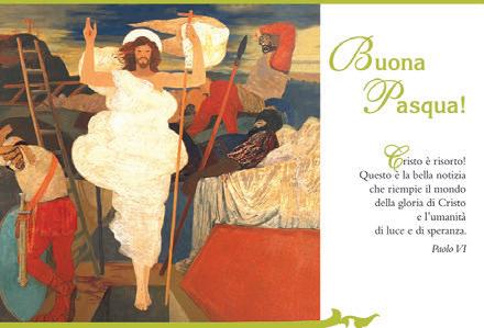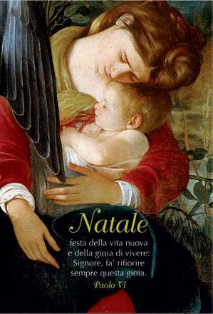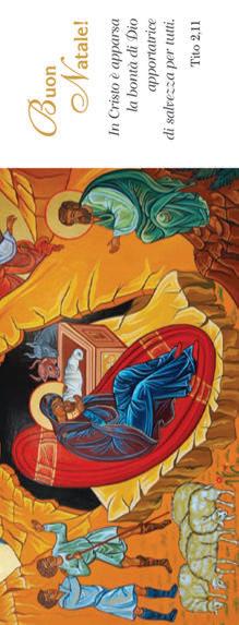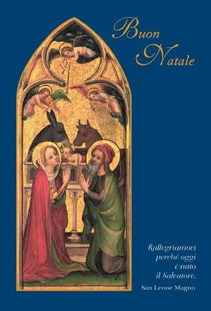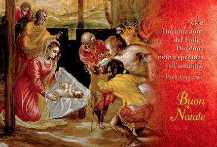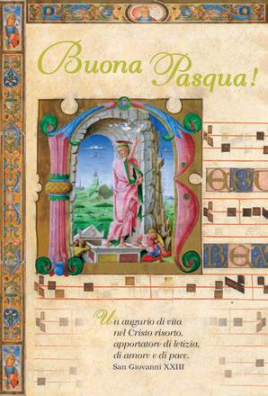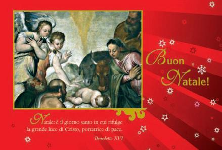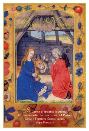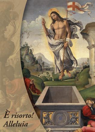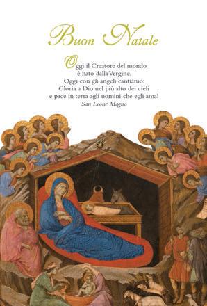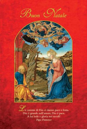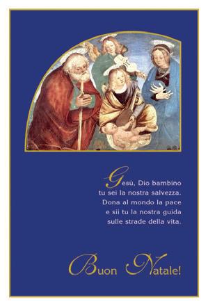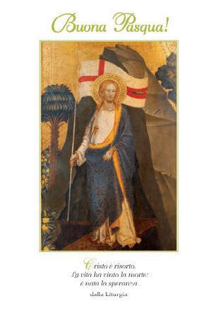 Riproduzioni d’arte religiosa e testo per un elegante augurio natalizio e pasquale.