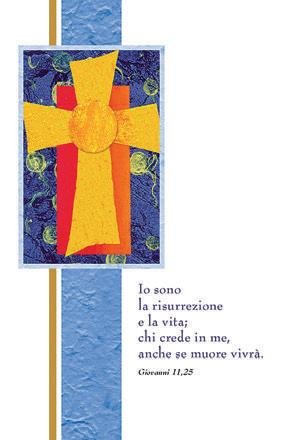 Riproduzioni d’arte religiosa e testo per un elegante augurio natalizio e pasquale. Biglietto con busta, in cellofan. F.to 11x16,8