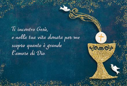 Biglietti con stampa in oro per la celebrazione dei Sacramenti. Biglietto con busta, in cellofan. F.to 10,5x15,5