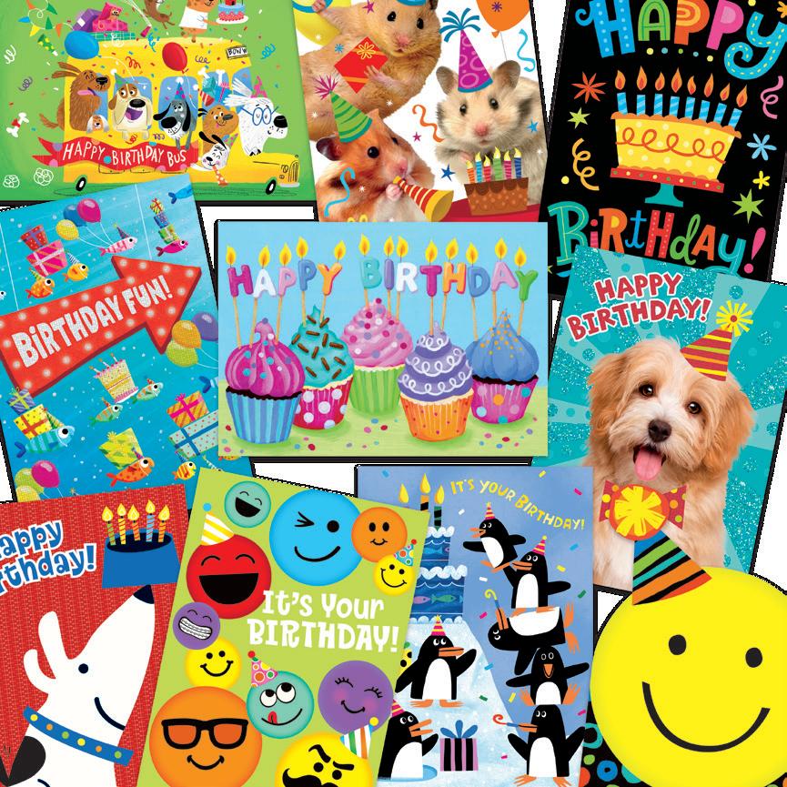 15” x 7” card with envelope • Minimum 12 per design • Decorate these birthday cards with the supplied stickers before giving to someone special. Cards are individually cello bagged.