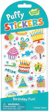 1 sheet per manent puffy stickers • 4"w x 9"h peggable pack •Minimum 12 per design
