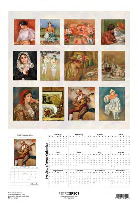 Selected from private collections and world renowned museums, Retrospect’s 2026 collection calendars offers your customers a wonderful variety of imagery presented on 100% fine natural linen paper. With a subtle weave pattern, this ivory colored natural paper has a very slight raised texture on the front and a smooth feel on the back. All of these attributes leave you with a high quality product.