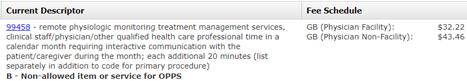 99458 (remote physiologic monitoring treatment management services? each additional 20 minutes) may be reported up to two times per month (once at 40 minutes, next at 60 minutes) after 99457 (remote physiologic monitoring treatment management services? each first 20 minutes) has been billed RPM codes may be reported during the same service period as CCM (99487-99490), TCM (99495-99496)