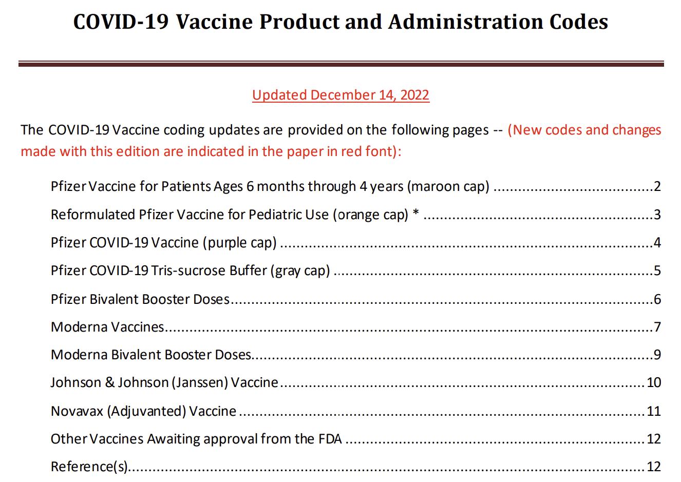18 PARA Weekly eJournal: January 25 2023 COVID-19 VACCINEPRODUCTAND ADMINISTRATION CODES