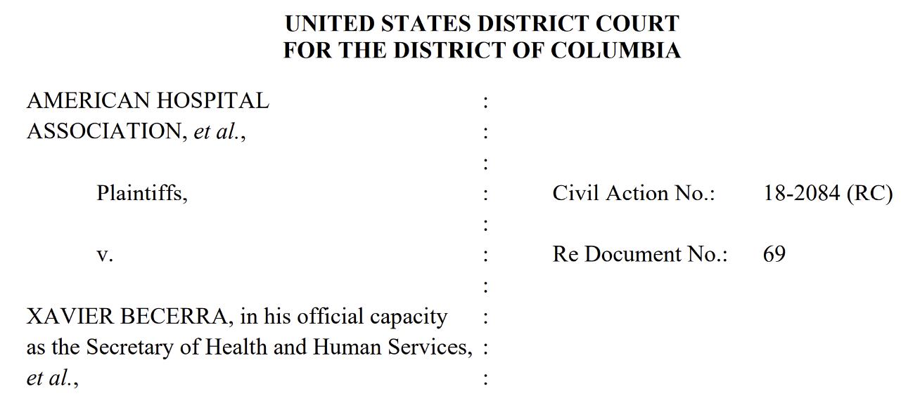 The AHA issued a press release which reported the court decision at the following link: https://www.aha.org/news/headline/2023-01-10-district-court-remands-case-hhs-determineremedy-340b-underpayments