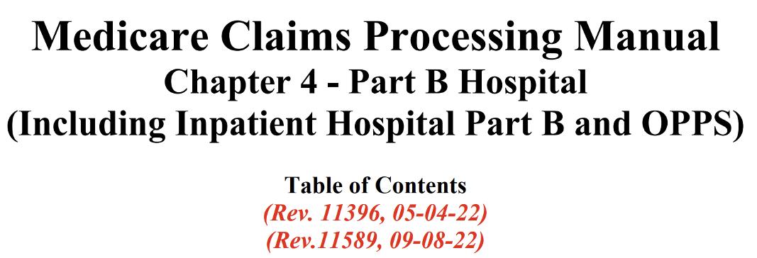 Medicare provides guidance on these exceptions in the Medicare Claims Processing Manual, Chapter 4 ?Part B Hospital, Paragraph 180.7 ? Inpatient-only Services: https://www cms gov/Regulations-and-Guidance/Guidance/Manuals/Downloads/clm104c04 pdf