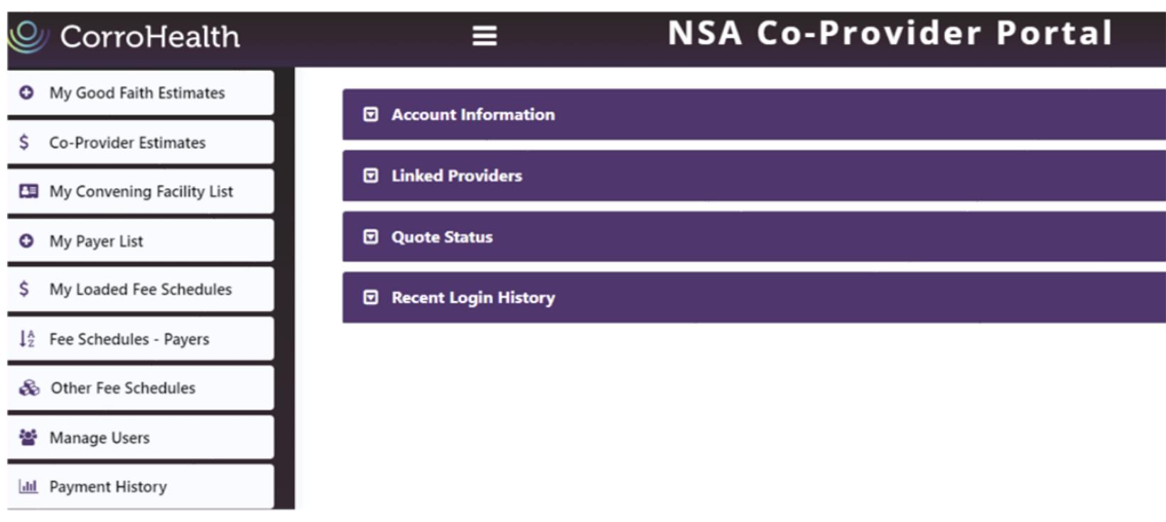 The NSA Co-Provider Portal is accessed by Users who work in conjunction with the convening provider to issue a comprehensive GFEof all reasonably anticipated charges from all anticipated providers during the scheduled service. The Co-Provider Portal can also be used to issue a GFE directly to an uninsured individual when the co-provider is scheduling the service in their office/clinic and is now considered a convening provider who must furnish all the required GFE data elements