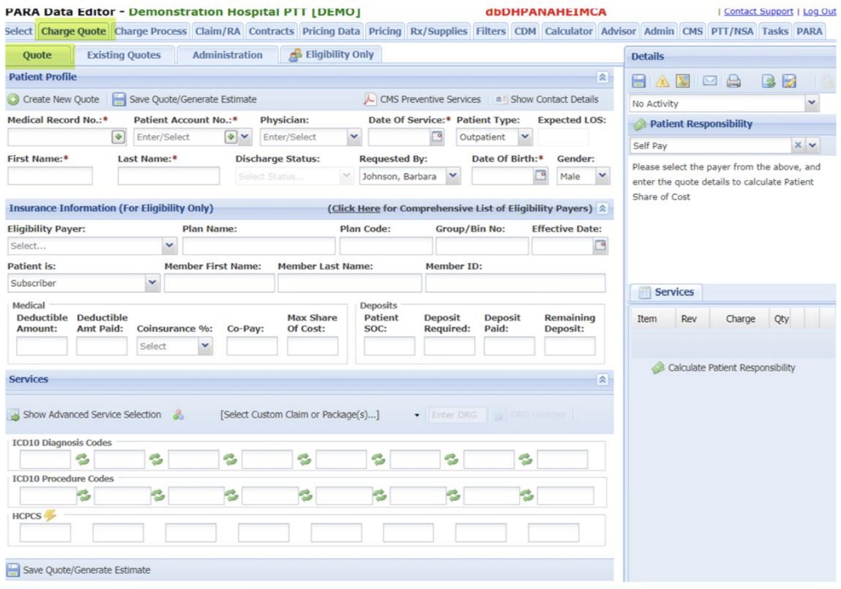 When the patient is having trouble accessing or navigating the PTT, or the desired service is not a shoppable service, the Charge Quote tab of the PARA Data Editor (PDE) can be used by PDEUsers to generate a quote These quotes are not mandated by any laws, but the benefits of providing cost estimates prior to scheduled services include: