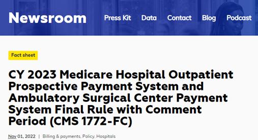CMSsummarized the CY2023 Medicare Hospital Outpatient Prospective Payment System and Ambulatory Surgical Center Payment System Final Rule changes in its Newsroom Fact Sheet available through the following link: https://www cms gov/newsroom/ fact-sheets/cy-2023-medicare-hospitaloutpatientprospective-payment-systemand-ambulatory-surgical-center-2