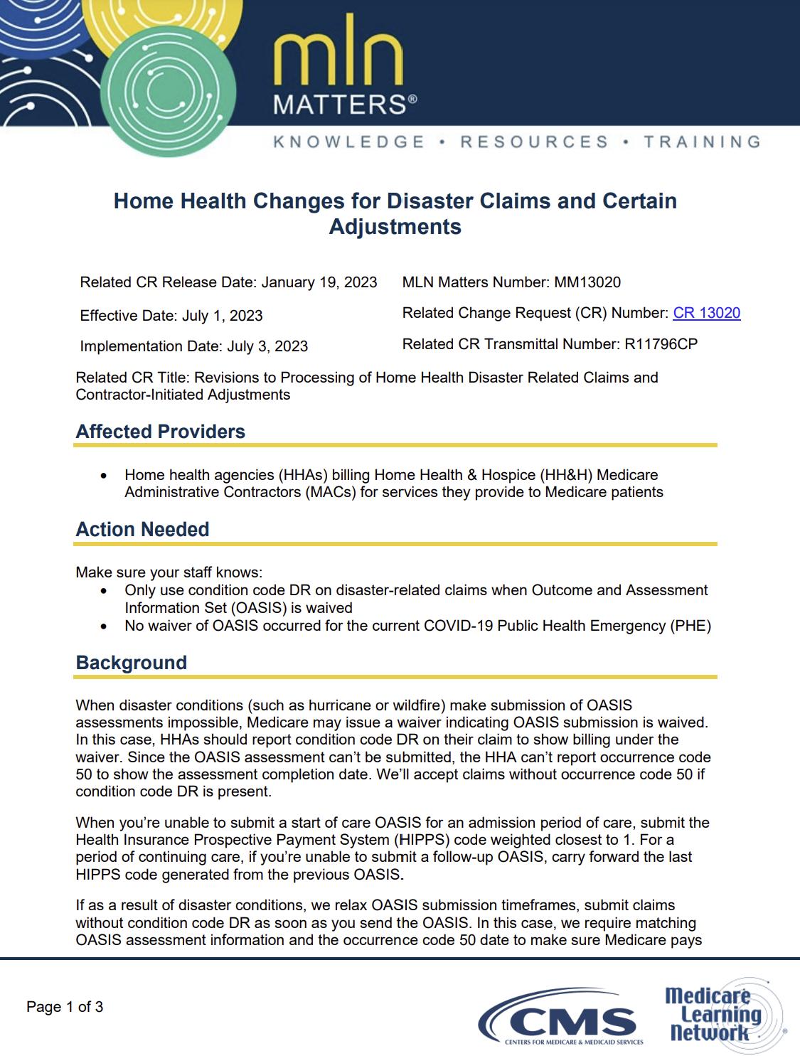 31 PARA Weekly eJournal: January 25, 2023 MLN CONNECTS PARA invit es you t o check out t he m lnconnect s page available from t he Cent ers For Medicare and Medicaid (CMS). It 's chock full of new s and inform at ion, t raining opport unit ies, event s and m ore! Each w eek PARA w ill bring you t he lat est new s and links t o available resources. Click each link for t he PDF! Thursday, January 19, 2023 New s - Additional Steps to Strengthen Nursing Home Safety and Transparency - Increase in 2023 in Organizations and Beneficiaries Benefiting from Coordinated Care in Accountable Care Relationship - DMEPOS: Updates to Face-to-Face Encounter & Written Order Prior to Delivery List - Skilled Nursing Facility Provider Preview Reports: Review by February 16 - Value-Based Insurance Design Model: Learn about the Hospice Benefit Component - Medicare Ground Ambulance Data Collection System: 5 Top Tips for Reporting - Glaucoma Awareness Month: Act to Prevent Vision Loss Com pliance - Home Health Rural Add-On Policy Claim s, Pricers, & Codes - ICD-10 Code Files & MS-DRGs Version 40.1: April Update - Integrated Outpatient Code Editor: Version 24 R1 Publicat ions - Post-Acute Care Quality Reporting Programs: COVID-19 Public Reporting