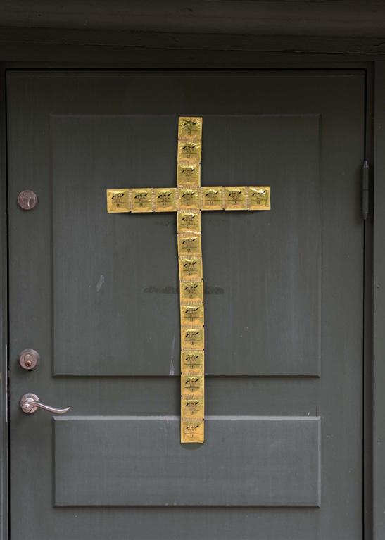 I started stapling condoms together last year on a whim. I was walking on the streets by myself, managing a bout of bitterness from being single forever. ‘Nobody wants me,’ I thought to myself. But now that I’m older and wiser, I can say back that maybe I don’t want anybody. So, I went through a stream of thoughts ranging from gays getting pregnant, cum-shots into gloryholes, commitments to a hole, and hope. I think there is hope as long as there are holes. Hope, hole, whole. This cross is my manifesto for mis/conception: Conception – the dogmatic heterosexual ritual enmeshed with a Judeo-Christian hauntology – meets Misconception – a mistake, faulty thinking. Thus, a condom cross presents itself as sacred and a sacrilege; equally sacred and equally profane. The crosses are dated according to their expiration date, which means they have a limited lifespan to persuade. Each cross establishes a line of communication, manifested in their naming: ‘call me,’ ‘text me,’ ‘do me,’ ‘remember me,’ and so on. (email exchange 6 Nov 2024)
