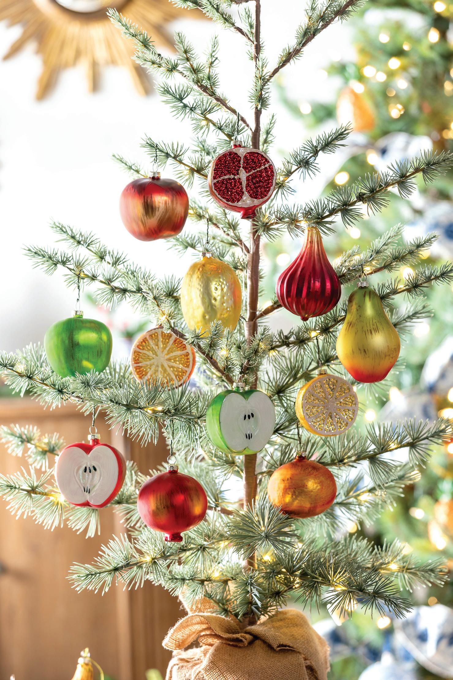 XAO40353, ALEXANDRA DEMILUNE CABINET: EFC36163, SIMONE UPHOLSTERED ARM CHAIR: EFS06072, CHRISTMAS FRUIT ORNAMENTS, SET OF 12: XAO80707