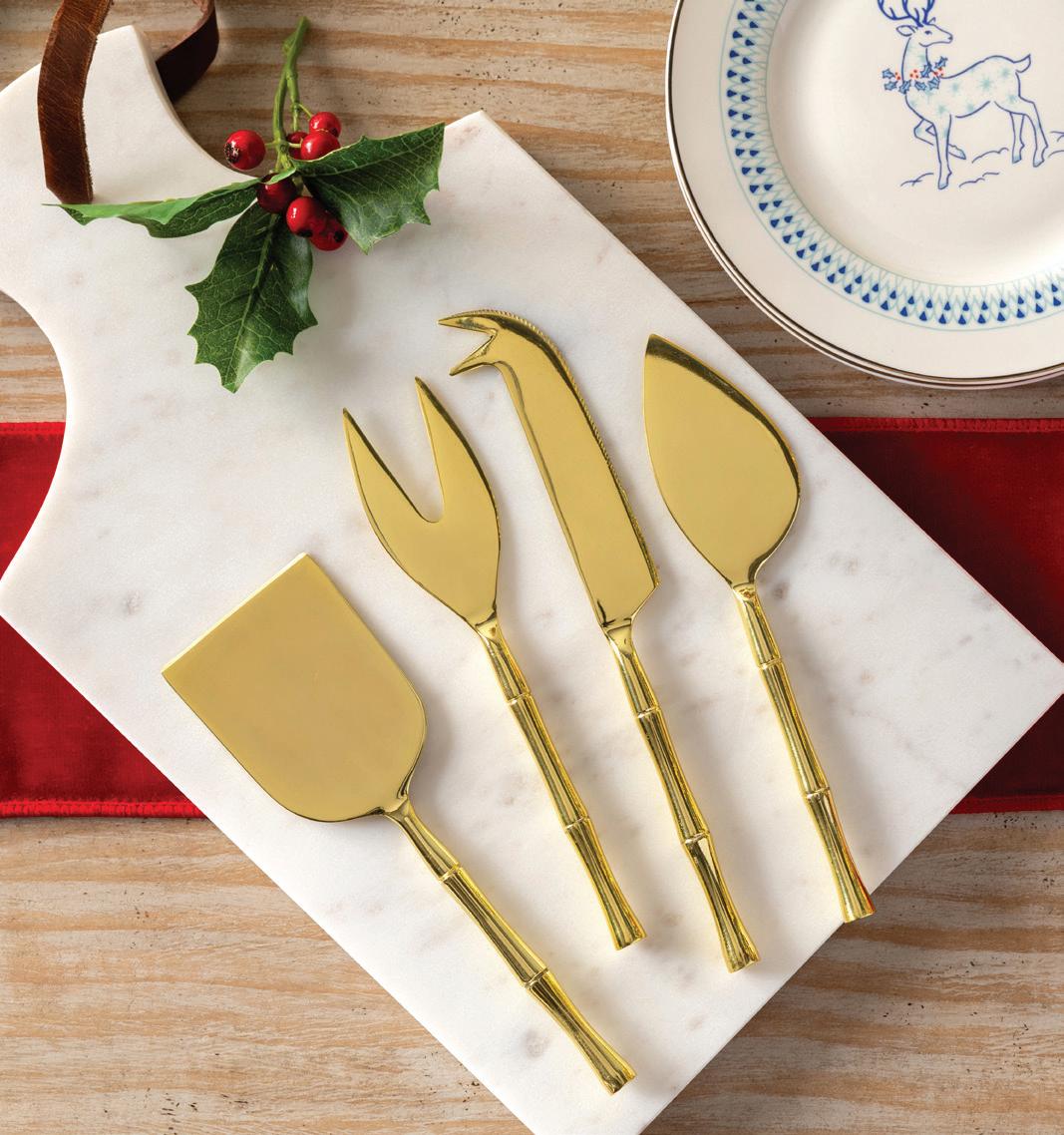 PORCELAIN TIERED PAGODA: XAB40514, FOO DOG EMBROIDERED COCKTAIL NAPKIN: XAW40437, BAMBOO MOTIF GOLD CHEESE SERVERS, BOXED SET OF 4: EAW40270, MARBLE CUTTING BOARD: EAW95797, BAMBOO MOTIF GOLD FLATWARE, BOXED SET OF 5: EAW40269, FESTIVE CHINOISERIE COCKTAIL NAPKIN, 4 ASSORTED STYLES: XAW40453
