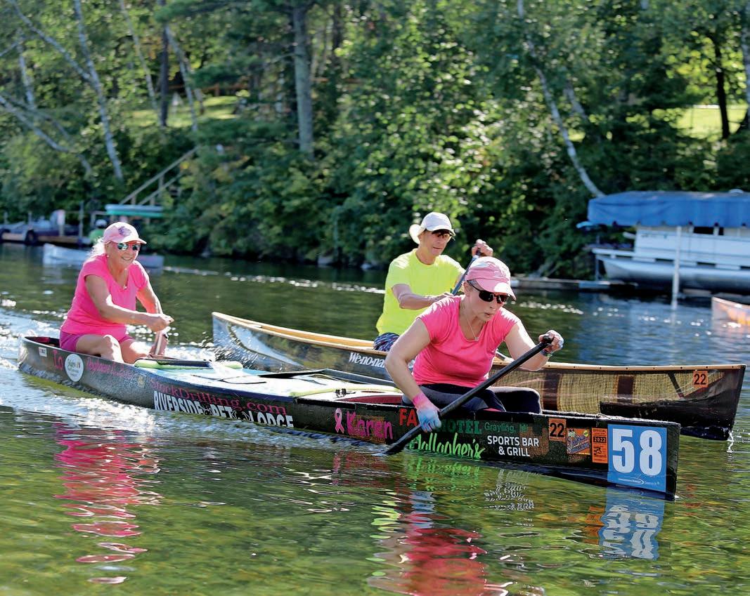 Organized by a nonprofit volunteer organization in 1947, the AuSable River Canoe Marathon is a nonstop canoe race, beginning at the AuSable River in Grayling and ending 120 miles later near the shores of Lake Huron in Oscoda, Michigan.