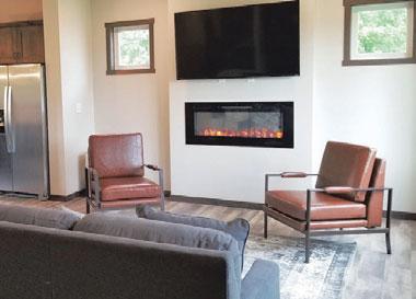 They’ve also done a lot of man caves, typically in the garage, she said. “A lot of people have a smaller cabin, and then they’ll put up a garage and put some family space in there for additional use.”