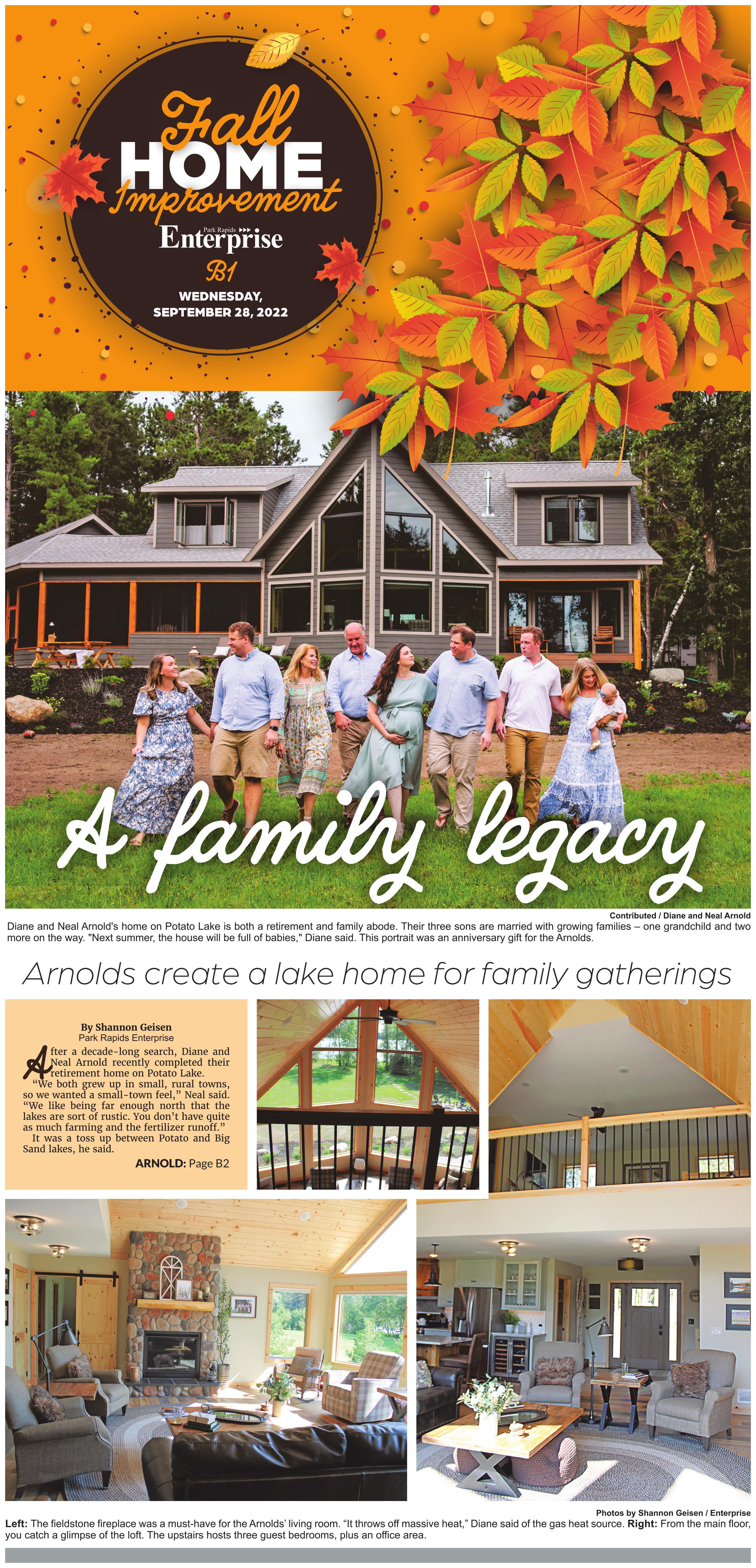 B6 | Fall Home Improvement | WEDNESDAY, SEPTEMBER 28, 2022 | PARK RAPIDS ENTERPRISE PARKRAPIDSENTERPRISE.COM A COMMUNITY MINDED BANK Park Rapids • Pine City • Nevis • northwoodsbank.com • 218-732-7221 HOME IMPROVEMENT LOAN NO CLOSING COSTS Serving CommunityOur For Over 103 Years NMLS# 416535 OFFICE (218) 564-7704 • FAX (218) 564-7804 1036 Aspen Ave. SE, Menahga, MN mnprocontractors@gmail.com procontractorsmn.co Ask about our ProWind Brace System! “We are dedicated to creating the building of your dreams” Commercial • Residential • Agricultural Randall Keranen (218) 255-1652 Daniel Keranen (218) 255-2442 LICENSED IN MN & ND ~ LIC# BC-20545441 Proudly Serving the Park Rapids Area Since 1991 Highway 34 West, Park Rapids FREE ESTIMATES! Dependable Delivery Service, Including Saturdays! Mon-Fri 7:30-5:00 Sat 8:00-Noon 732-1423 Congratulations Neal & Diane! Thank you for choosing us as your excavating contractor! Enjoy your new home! RALPH V. SANQUIST CONSTRUCTION, INC. EXCAVATING ■ DIRT WORK TODD SANQUIST (218) 732-9209 A 300-square-foot apartment extends from the main house. It can accessed through the pantry or a separate entrance. ARNOLD: Page B8 ARNOLD From Page B3 If you did want to clean fish here, it’s not the end of the world. - Diane Arnold