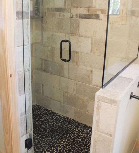 The tile showers, like this one in the apartment, make this a "forever home" for the Arnolds.