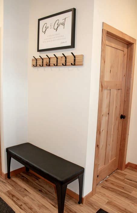 The Drewes selected matching furniture from Karvononen’s, a furniture store in Perham, that can be swapped between living spaces. For example, one piece works as an entryway bench or as extra seating at the dining room table, when needed.